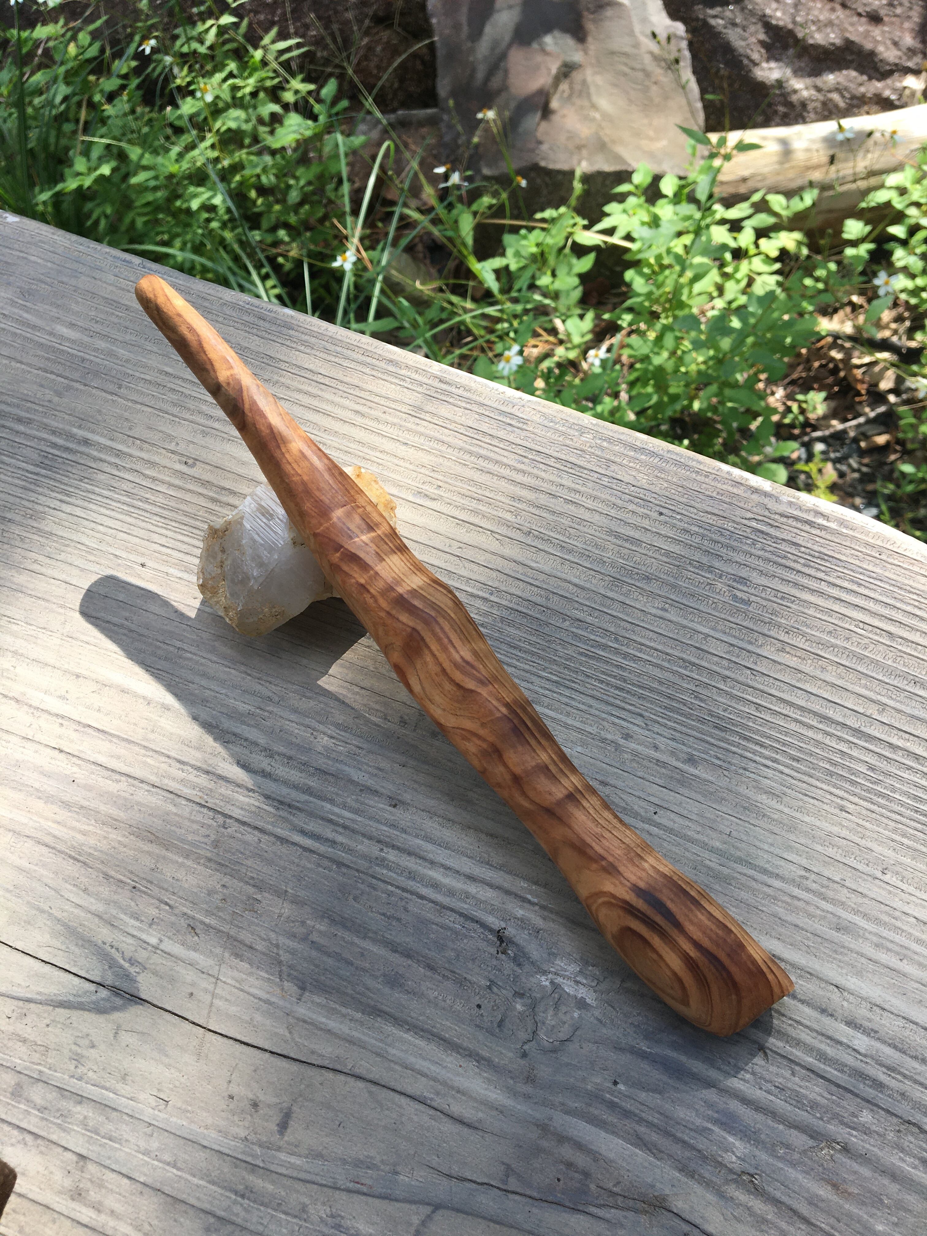 屋久杉で作ったルーン文字盤とワンドのセット販売になります。